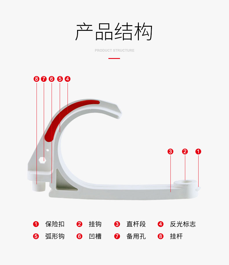 6、結(jié)構(gòu)簡(jiǎn)單合理,使用靈活,可根據(jù)實(shí)際需要任意調(diào)整電纜掛鉤的數(shù)量。